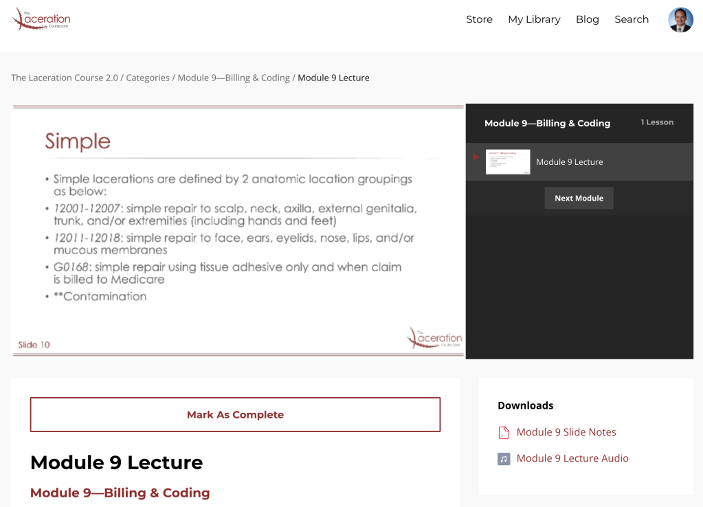 This is a systematic course on laceration repair for providers looking to start from scratch, or build their skills and comfort with complicated techniques. While this course is currently offered as a paid content through EB Medicine, the author Dr. Patrick O’Malley also has FOAMEd blog posts going to places I fear to tread, like the medico-legal aspects of laceration repair.